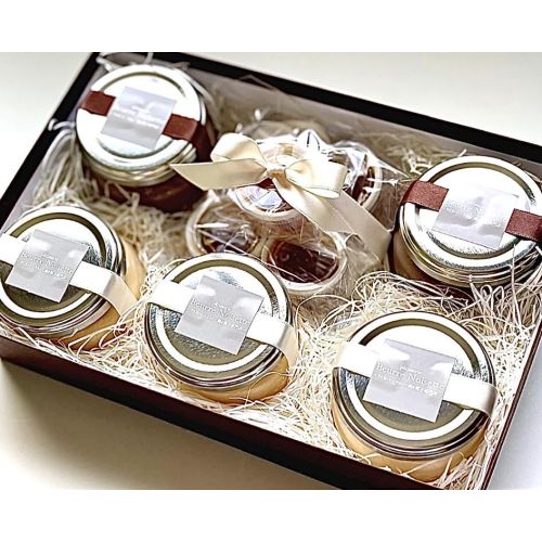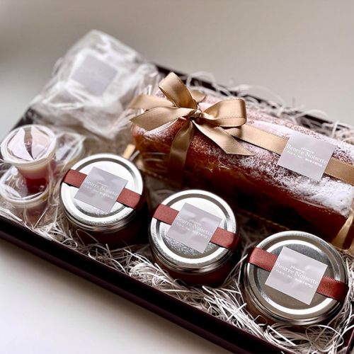 ブラウンの箱にサテンのリボンをかけたギフト仕様でお届けいたします。