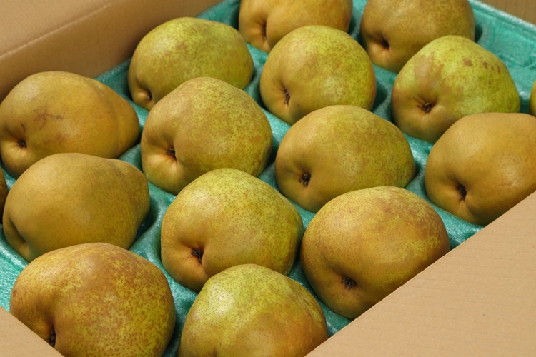 洋梨は食べ頃の判断が難しい果物です。低温で追熟された洋梨をコンテナごとに毎日確認、食味を行い到着時すぐ食べられるよう一番ベストな硬さで発送いたします。