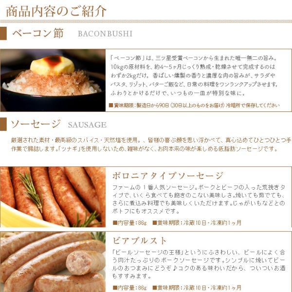 ベーコン節:製造日から90日(30日以上のものをお届け) 冷暗所で保存してください