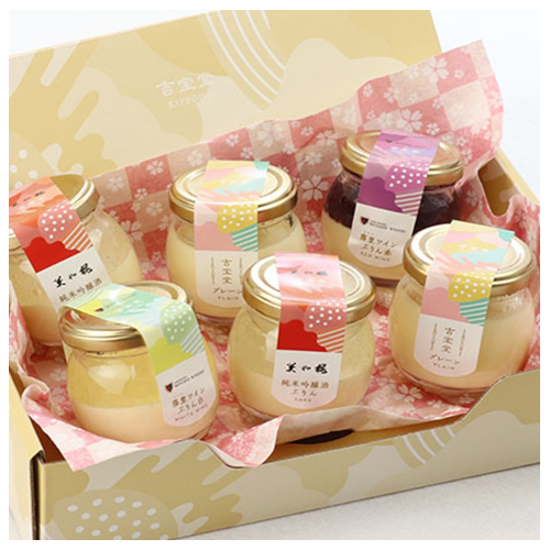 | 【6個セット】 ・プレーン70g×1個 ・メープル75g×1個 ・桜75g×1個 ・霧里ワインぷりん赤80g×1個 ・霧里ワインぷりん白80g×1個 ・純米吟醸酒ぷりん80g×1個 |