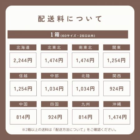 サイズ | 重量(kg) | 北海道 | 北東北 | 南東北 | 関東 | 信越 | 中部 | 北陸 | 関西 | 中国 | 四国 | 九州 | 沖縄 |