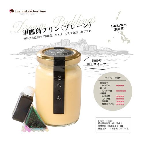 プレミアムフレーバーシリーズを販売。当店オリジナルのスペシャリティ珈琲豆を使い、独自にブレンドしたエスプレッソコーヒーを使用しています。世界遺産になった長崎の軍艦島をイメージしたご当地グルメ商品です。 主な食材には厳選した長崎県産の素材のみを使用しています。 HACCP工場で管理された酪農家直営の雲仙牛乳を使用。HACCP工場で管理された新鮮卵のみを使用。 親鶏の餌には抗生物質、添加物を一切使わない飼料で育った長崎県産の太陽卵のみを使用しています。 長崎県内で採取した風味豊かで甘い蜂蜜100%を使用。 プリンの甘味を蜂蜜で補うことにより、砂糖を極限まで減らし、健康や美容にも配慮した商品になっています。