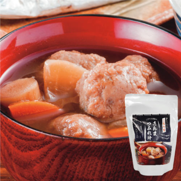 国産さんまを使用し、口どけ柔らかなやさしい美味しさのつみれ汁です。ヤマカノ醸造「丸大豆しょうゆ」を使用し、つみれと汁が引き立てあう一品です。